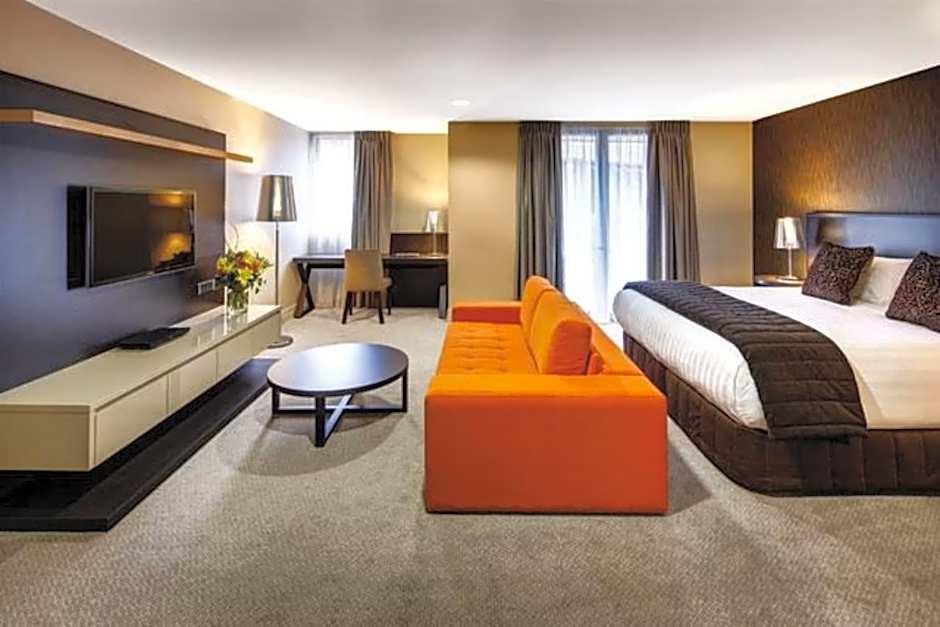 Consisting of 2 interconnecting rooms, this open plan 2-bedroom suite provides a private balcony. It also includes an private bathroom with separate bath and shower and heated towel rails. The kitchenette is equipped with a microwave, dishwasher and a portable stovetop. Laundry facilities are provided.
